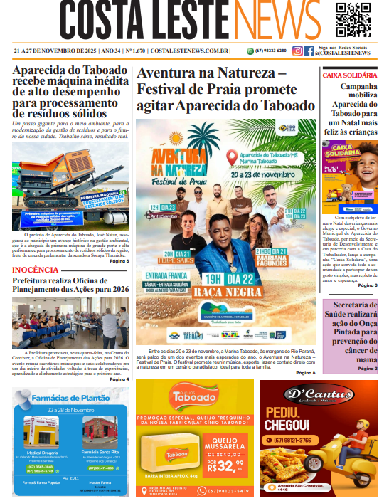 Veja Mais »A Prefeitura de Paranaíba divulgou a programação oficial do Natal Luz 2025, com uma agenda que promete movimentar a Praça da República
