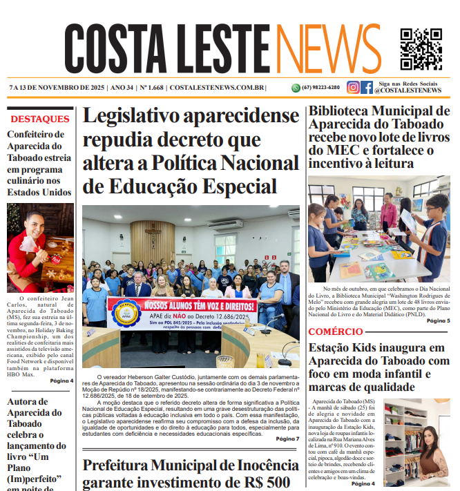 Na manhã desta segunda-feira, 10 de novembro, a Câmara Municipal de Aparecida do Taboado realizou sua 39ª Sessão Ordinária, marcada por um