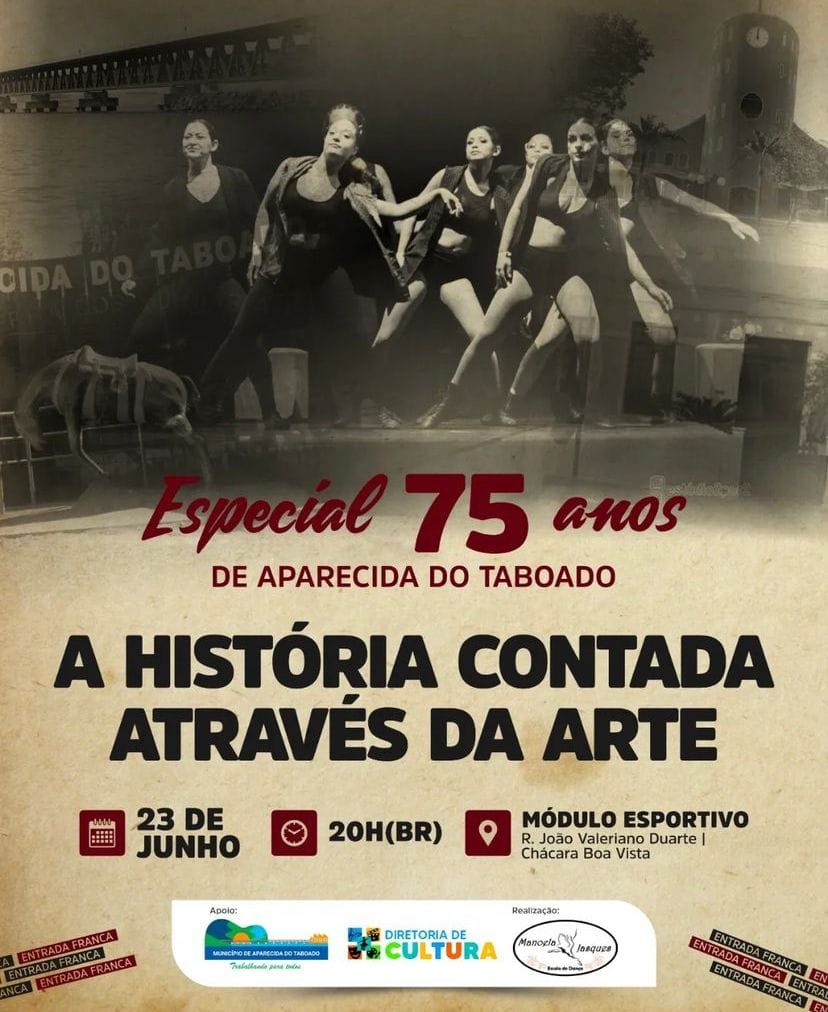 Nas edições passadas, os alunos realizavam uma reapresentação do espetáculo produzido no ano anterior, já neste ano, o evento será totalmente produzido com coreografias inéditas e a participação das escolas municipais, estaduais e particulares, APAE, Cia. de teatro “Sou o que Sou”, melhor idade, Instituto Dom Afonso Maria Fusco, grupo de dança Eduardo Araújo, Ronan Santos com grupo de capoeira e Anain Alves comandando grupo de cativa e Folia de Reis. O tema desenvolvido será um especial 75 anos de Aparecida do Taboado, que contará a história do município através da arte.