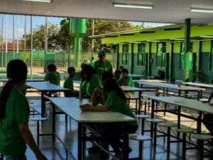 “Cheguei aqui em julho de 2020 em plena pandemia, tivemos muitos momentos de desafios, além da covid, o Novo Ensino Médio e junto a reforma. Na primeira parte ficamos dentro da unidade por opção da comunidade escolar, posteriormente saímos para um local adaptado, agora com retorno o impacto é positivo. O ambiente é adequado, arejado, limpo”, afirmou a coordenadora – e professora de química há 23 anos –, Janice Andréia Brito Araújo.