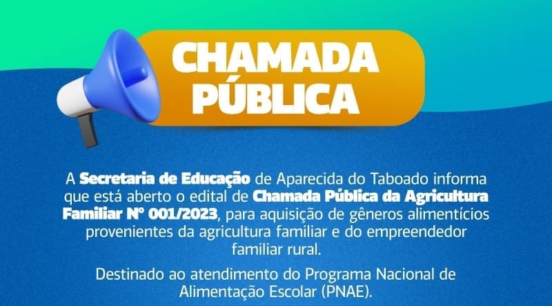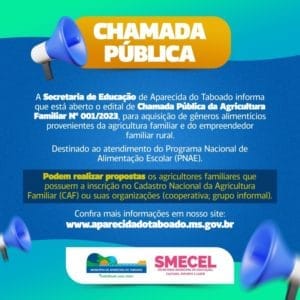 Está aberto o Edital de Chamada Pública nº 001/2023 para aquisição de gêneros alimentícios provenientes da agricultura familiar e do empreendedor familiar rural ou suas organizações, destinado ao atendimento do Programa Nacional de Alimentação Escolar (PNAE).