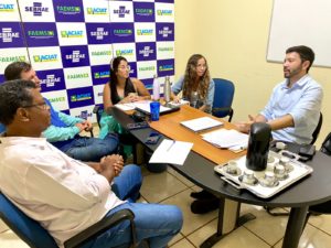 Participaram da reunião, o vice-presidente da associação, José Ivo Bernardes de Souza; o tesoureiro, Jardel Gianini; consultor do SEBRAE, Fábio Ferreira e as colaboradoras da entidade, Maria Anthonia Said, Renata Amaral e Sarah Protz.
