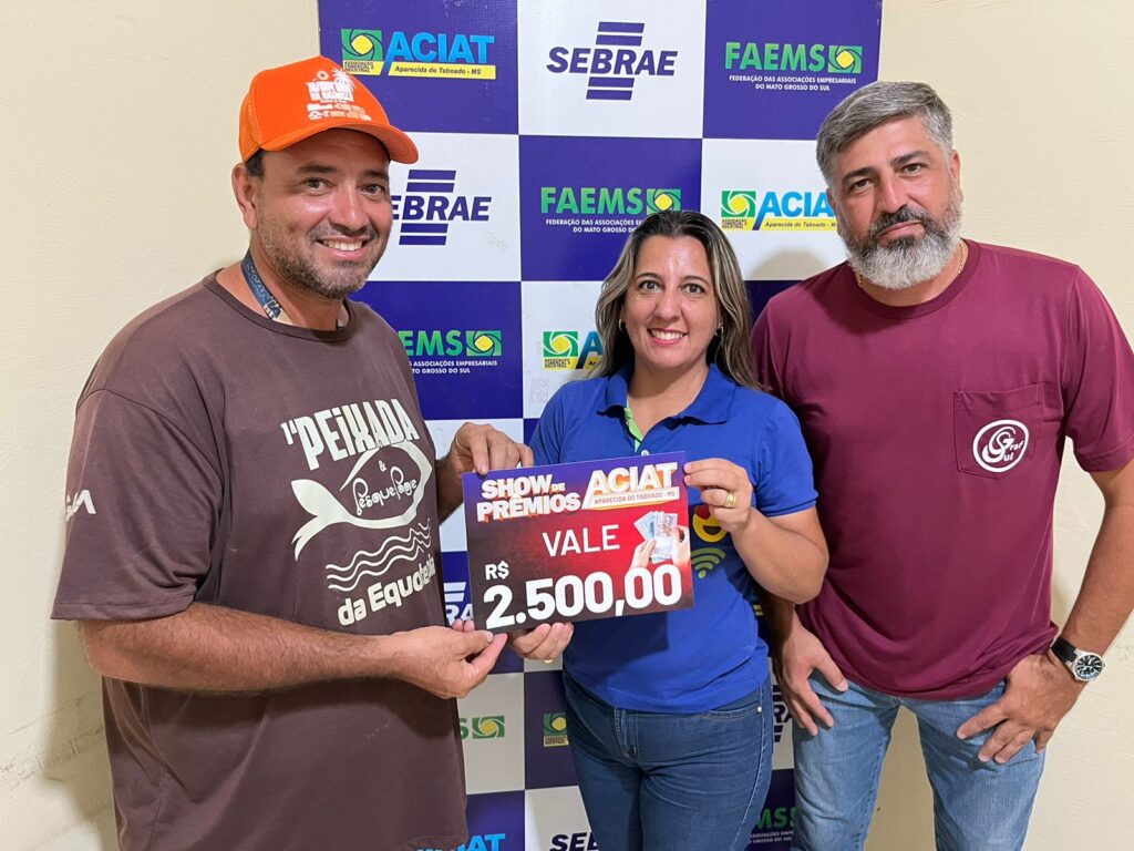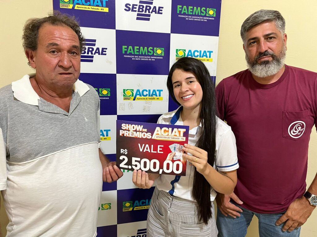 Aparecida do Taboado (MS) – A Associação Comercial (ACIAT) e Sindicato do Comercio (SINDIRAREJO) realizaram na tarde desta segunda-feira (06) a entrega da premiação aos comtemplados por meio da promoção “Final de Ano Premiado” que distribuiu R$30 mil em dinheiro para sete ganhadores. O sorteio digital ocorreu no dia 31 de dezembro como parte da programação da virada do ano, promovida pelo Governo Municipal.