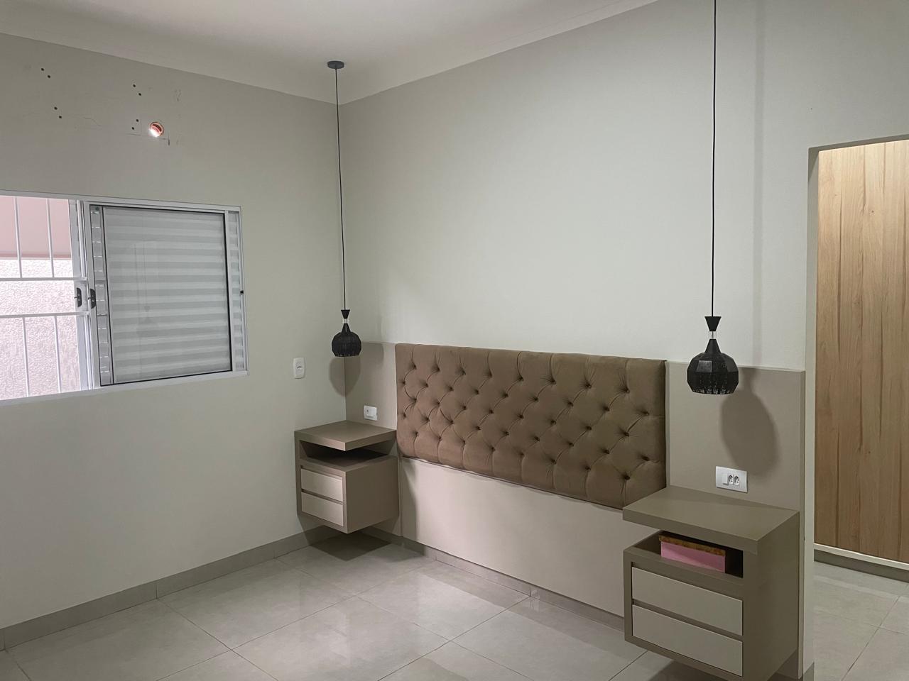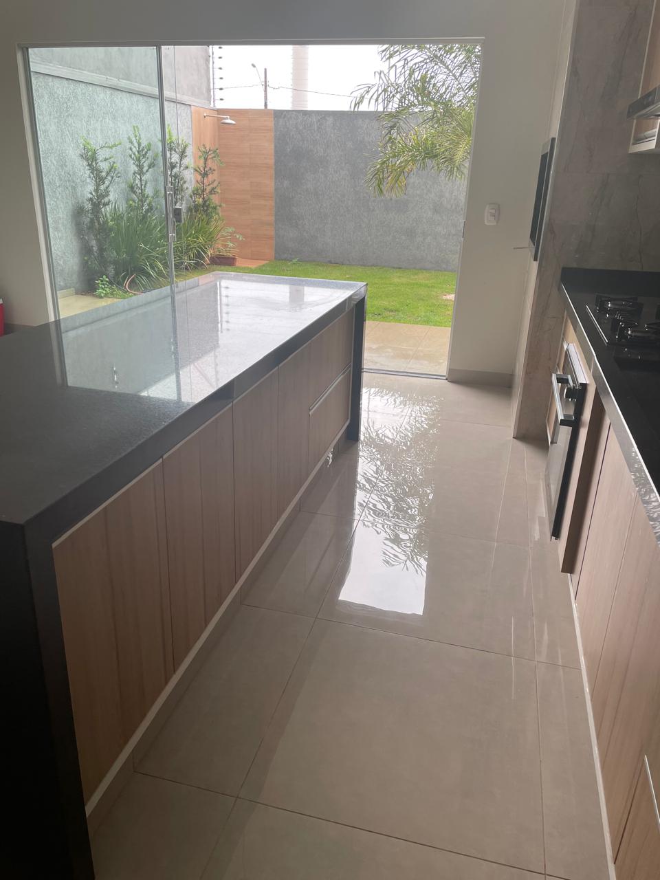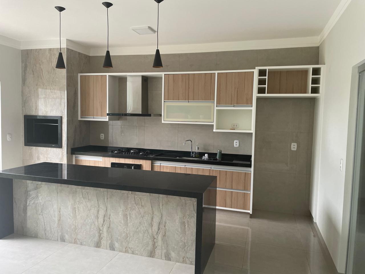 É uma suite com closet + dois quartos (3 no total), um banheiro social e mais um lavabo, área gourmet, garagem coberta p/ 2 carros