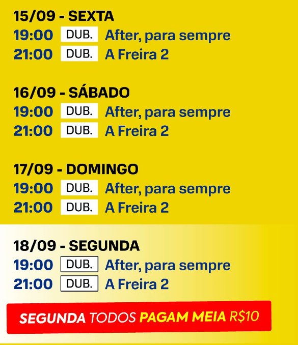 De sexta-feira (15) até a próxima segunda-feira (18), ambos os filmes terão sessões legendadas com sessões no período noturno. As sessões de segunda-feira terão o preço reduzido, no valor de R$10,00.