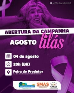 A abertura do mês de conscientização será no dia 4 de agosto na Feira do Produtor, com a participação de representantes de vários seguimentos da sociedade civil organizada e de autoridades municipais, oportunidade em que haverá um bate papo e a entrega de panfletos.