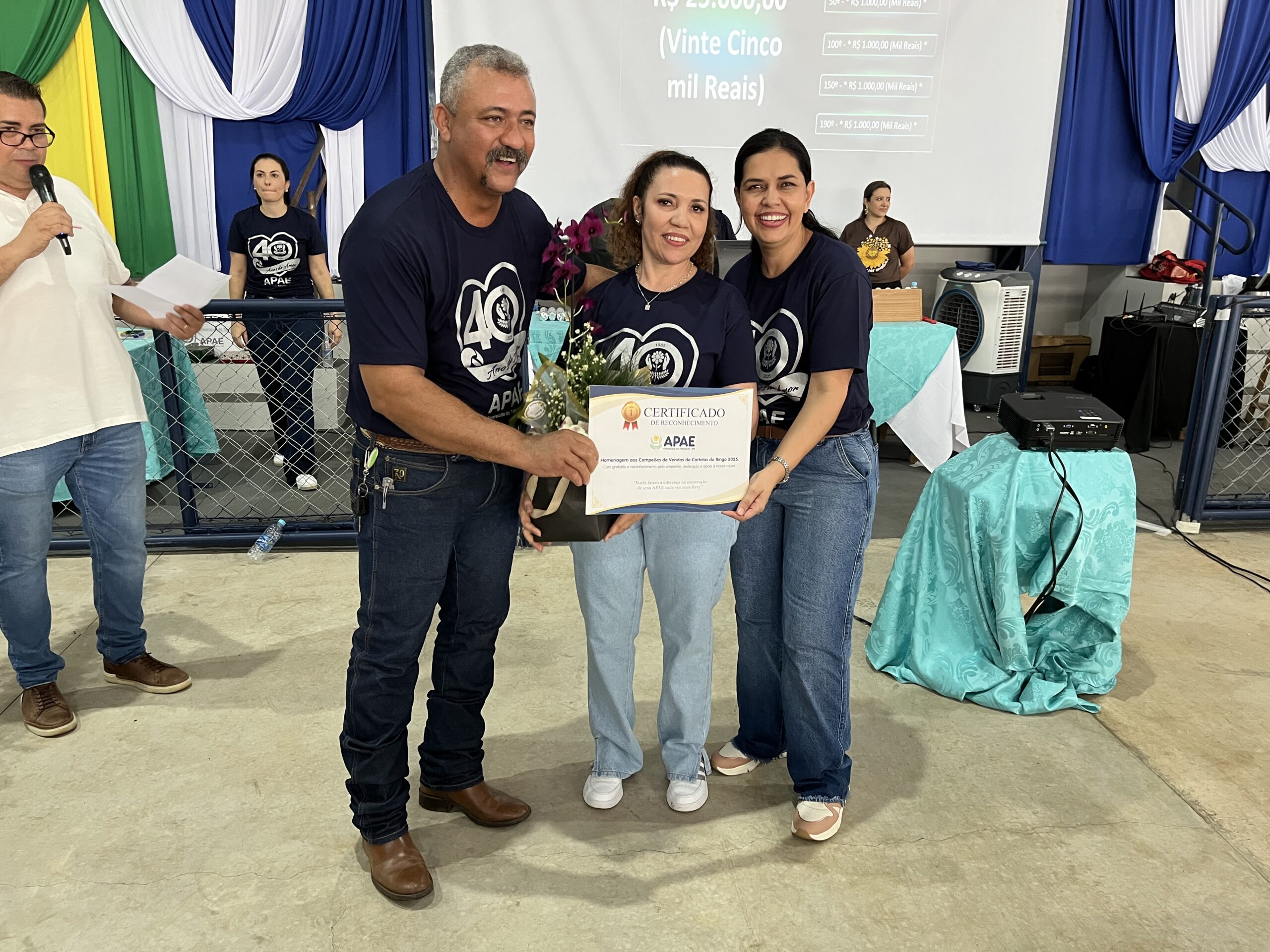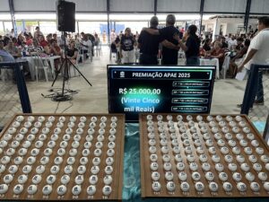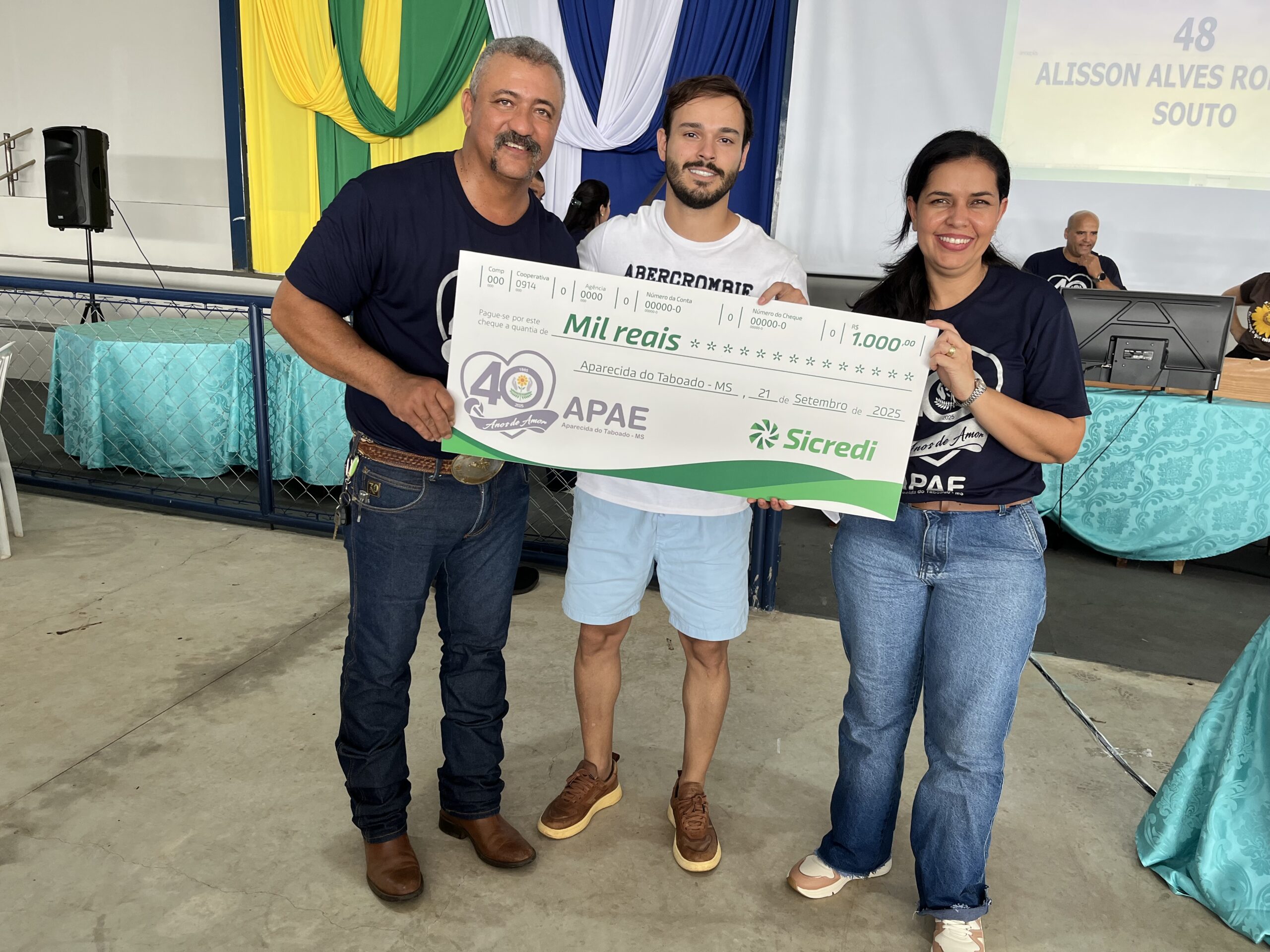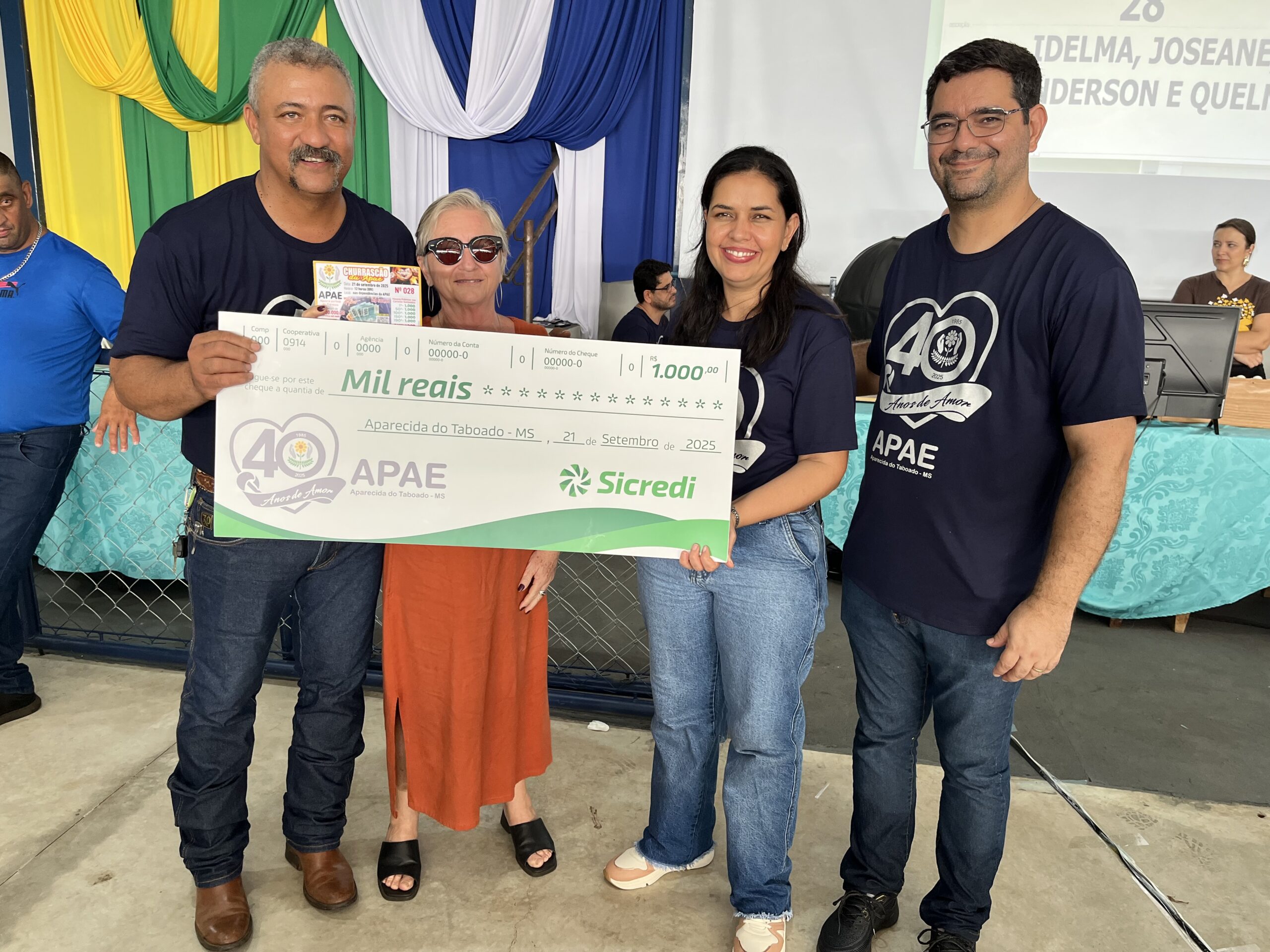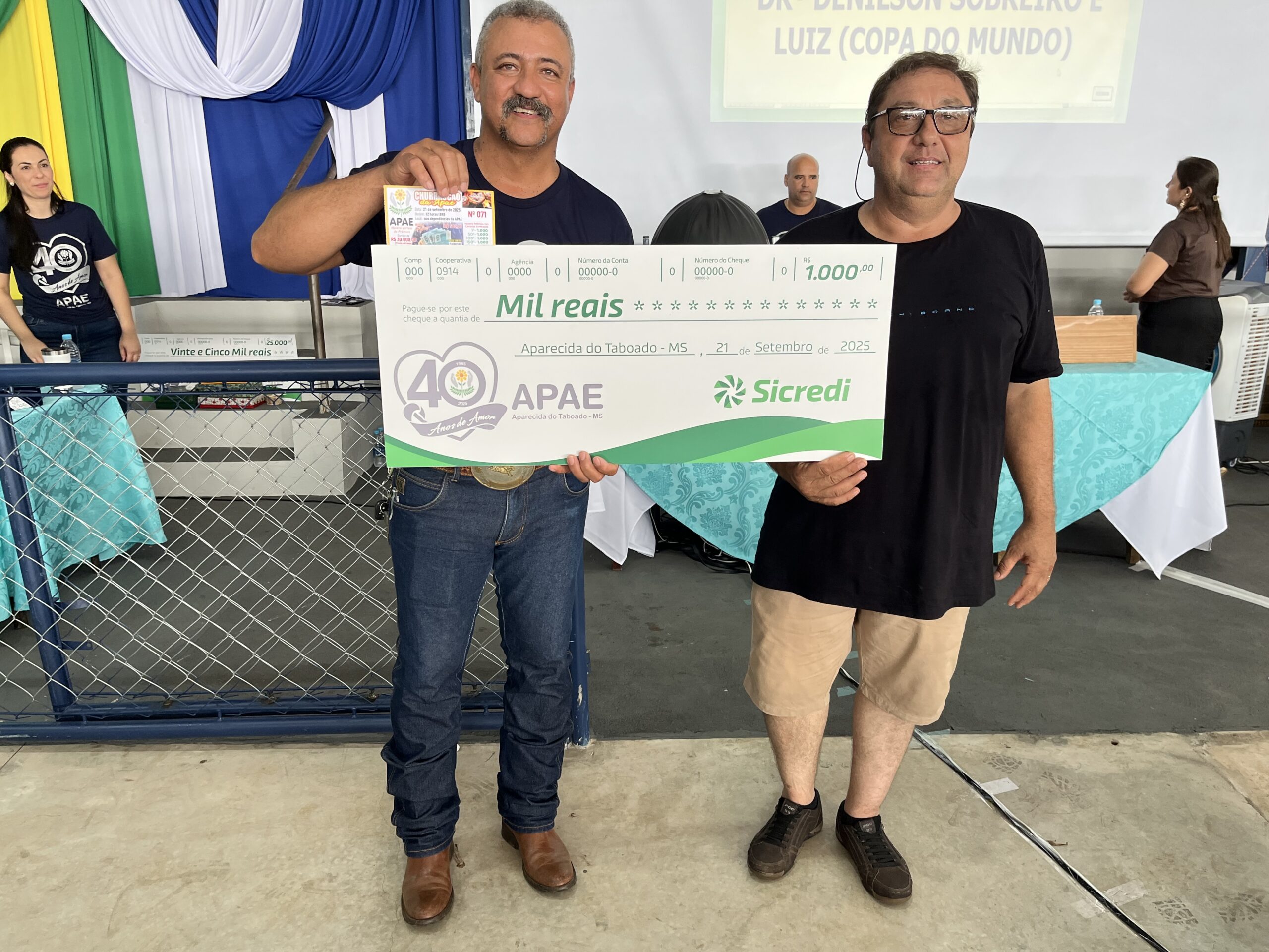 Aparecida do Taboado (MS) – Neste domingo (21/09), a Associação de Pais e Amigos dos Excepcionais (APAE) recebeu a comunidade aparecidense para um almoço beneficente com sorteio de prêmios. Ao todo, foram sorteados R$ 30.000,00: cinco prêmios de R$ 1.000,00 cada e o principal, de R$ 25.000,00, que contemplou a cartela nº 176, em nome de Roneilton Tiago Dias.