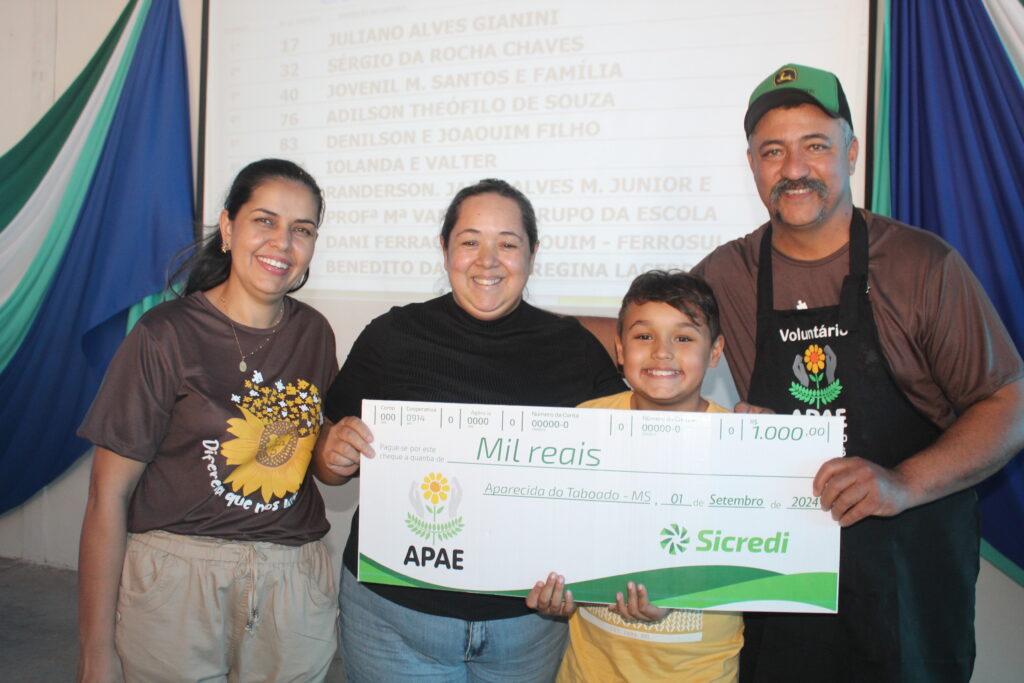 Aparecida do Taboado (MS) – A cartela de número 199 adquirida por Benedito da Silva e Regina Lacerda, foi a contemplada com o prêmio no valor de R$ 20.000,00 sorteada durante almoço especial realizado pela APAE neste domingo (01).