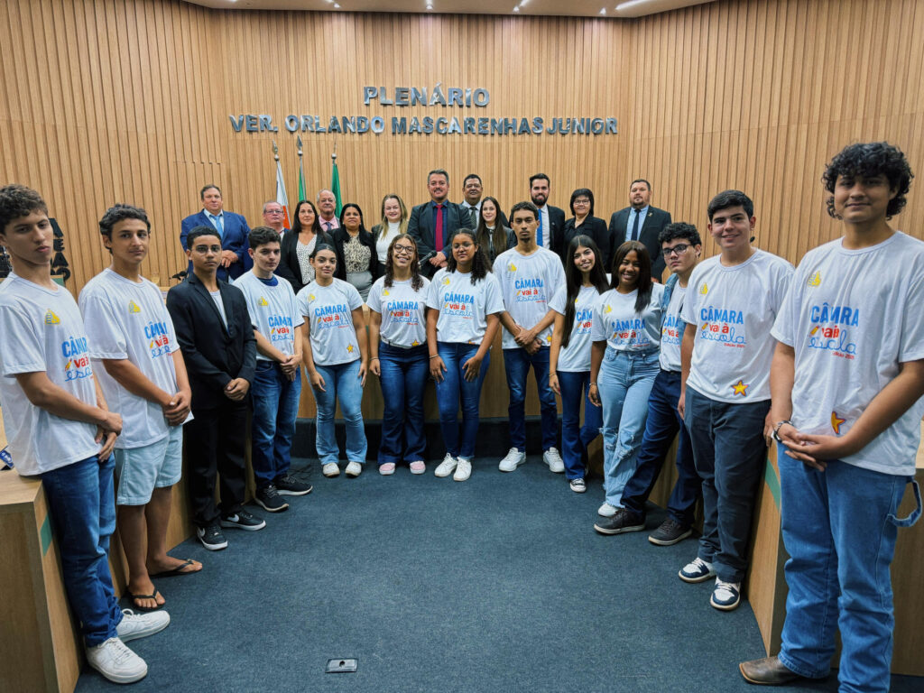 A Câmara Municipal recebeu, durante Sessão Ordinária, os alunos delegados eleitos pelo projeto “Câmara Vai à Escola”, representando as escolas participantes da iniciativa. A presença marcou o início oficial das atividades dos estudantes no projeto, que busca aproximar o Poder Legislativo da comunidade escolar, promovendo educação política, cidadania e participação ativa dos jovens.