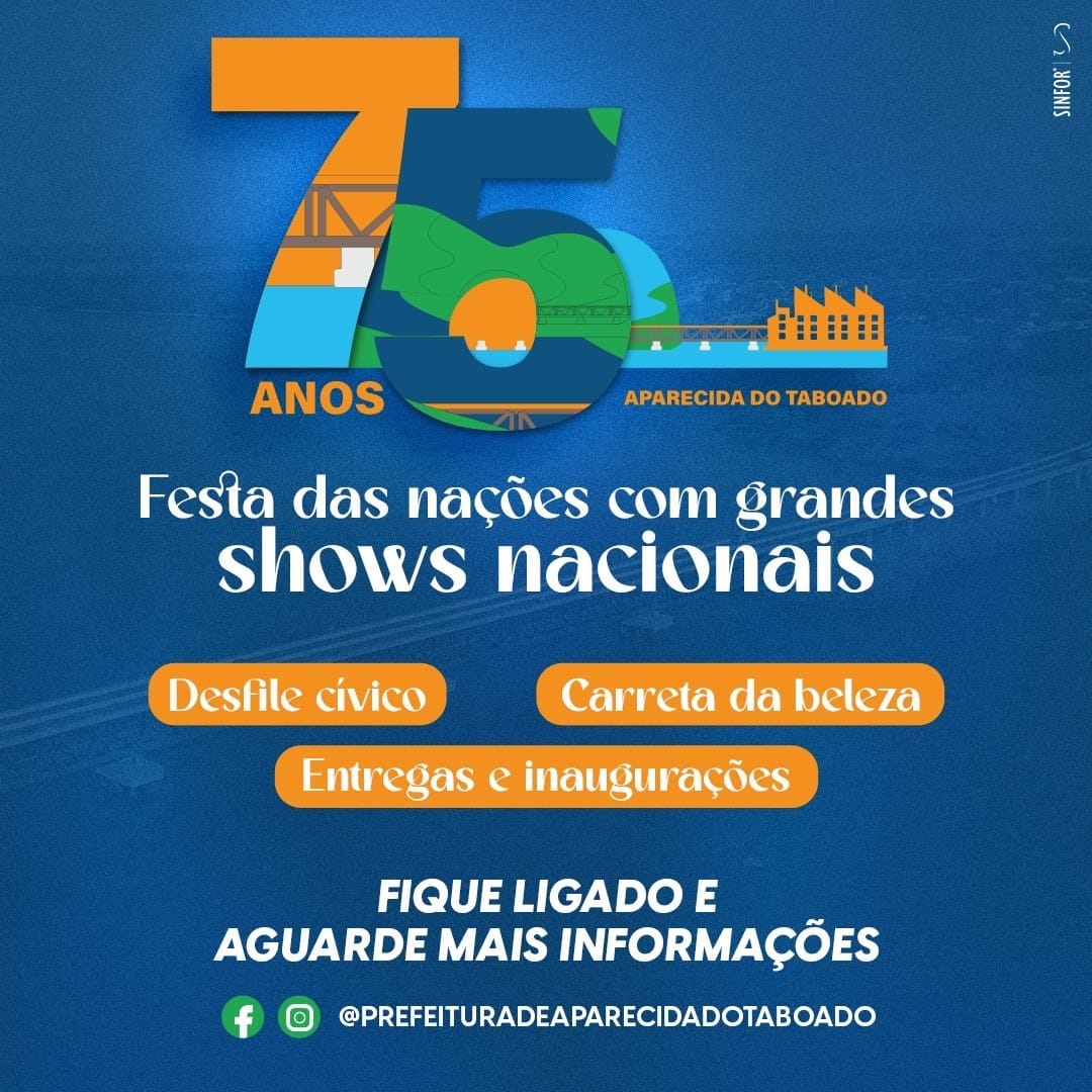 O cantor Amado Batista será a primeira atração artística da Festa das Nações, que terá início em 27 de setembro, véspera do aniversário de 75 de emancipação política de Aparecida do Taboado. Uma noite de grandes emoções aguarda o município e toda a região, pois o artista é um ícone da música brasileira, conquistando a todos por onde passa.