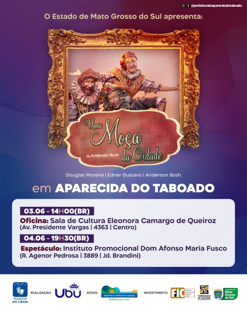Aparecida do Taboado (MS) – Pela segunda vez, o Grupo de Artes Cênicas UBU estará no município e apresentará gratuitamente a peça “Uma Moça da Cidade”, através do projeto “Teatro Interior- 2ª Fase”.
