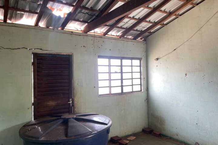 MaisAparecida do Taboado (MS) – Localizada na Vila São Jerônimo, uma casa simples de três cômodos foi atingida por uma árvore que caiu e destruiu parte do telhado da residência em 2023.
