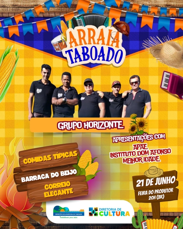 Aparecida do Taboado (MS) – Acontecerá nesta sexta-feira (21) a partir das 20h, o “Arraiá Taboado” na Feira do Produtor.