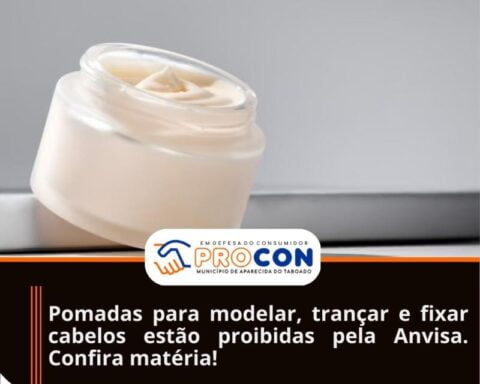 MaisMas o PROCON APT “Vereador Ivair Garrido Aydar”, faz um alerta. A Agência Nacional de Vigilância Sanitária – ANVISA, proibiu a venda de todas as pomadas para modelar, trançar e fixar cabelos.