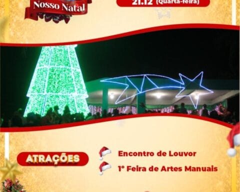 O Nosso Natal 2022 na noite desta quarta-feira (21) ocorrerá o Encontro de Louvor e a continuidade da 1ª Feira de Artes Manuais.