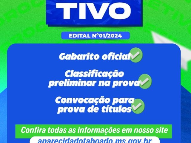 MaisA Prefeitura Municipal de Aparecida do Taboado e o Instituto de Avaliação Nacional – IAN, no uso de suas respectivas atribuições, visando atender os princípios norteadores da administração pública, tornaram público o