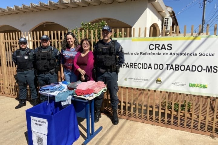 Na manhã desta terça-feira (23), integrantes da Polícia Militar de Aparecida do Taboado realizaram a entrega no Centro de Referência de Assistência Social – CRAS, de agasalhos e itens de inverno, arrecadados na