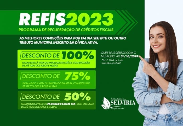 Quem tem dívidas com a Prefeitura de Selvíria ainda pode ganhar descontos no pagamento de taxas e impostos atrasados. É o programa Recuperação de Créditos Fiscais (REFIS), vigente até o próximo mês