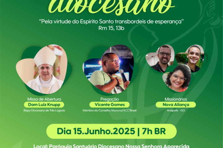 MaisAparecida do Taboado (MS) – Neste domingo, dia 15 de junho, a Paróquia Santuário Diocesano Nossa Senhora Aparecida será palco para mais uma edição do Cenáculo Diocesano realizado pela Renovação Carismática Católica