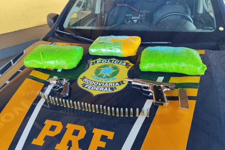 A Polícia Rodoviária Federal (PRF) apreendeu 12,9 kg de cocaína, dois revólveres cal. .38 e prendeu o homem que transportava a droga e as armas, nesta terça-feira (29), em Paranaíba (MS). Os