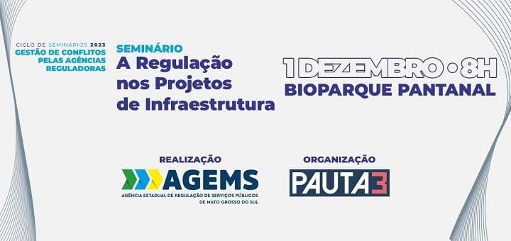 MaisAcontece no dia 1º de dezembro o evento que encerra o Ciclo de Seminários 2023: Gestão de Conflitos pelas Agências Reguladoras, promovido pela Agência Estadual de Regulação (AGEMS), em parceria com o Projeto