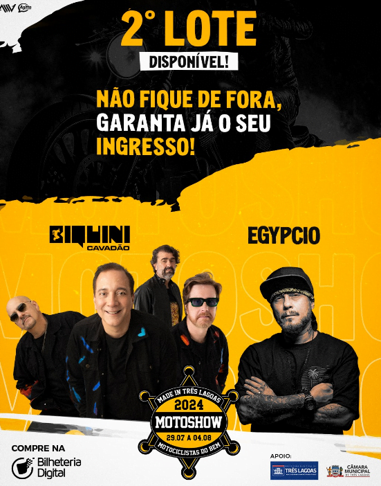 Já as apresentações musicais ficarão por conta da banda Biquini Cavadão e Egypcio. Os interessados podem adquirir a permanente do evento ou ingressos para os shows separadamente por meio do site motoshowtl.com.br.