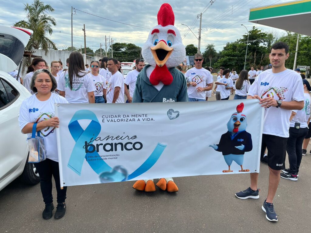 Aparecida do Taboado (MS) – Para apoiar a campanha Janeiro Branco, que aborda a importância dos cuidados com a saúde mental e emocional, o frigorífico avícola Bello Alimentos em parceria com o frigorífico de peixe GeneSeas, promoveu neste domingo (26) uma caminhada e diversas ações para evidenciar aos colaboradores que cuidar do corpo é tão importante quanto cuidar da mente.