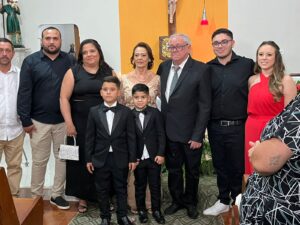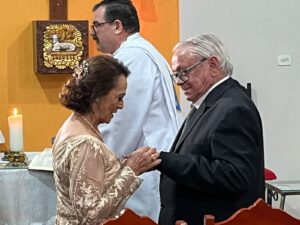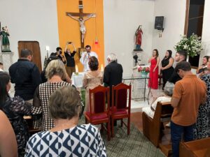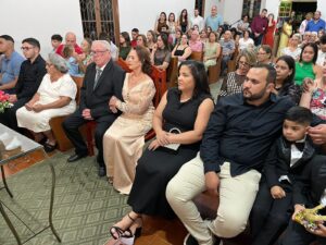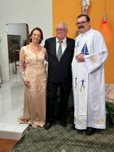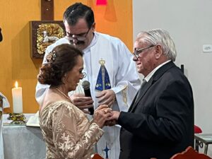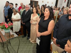 Aparecida do Taboado (MS) – O casal Tuca e Sebastião Tábuas reuniu a família e amigos para celebrar 50 anos de casados durante uma missa rezada na Capela São Cristóvão pelo Padre Valcir, especialmente convidados para a ocasião, onde houve renovação de votos, troca de alianças e mensagens de amor dos filhos para os pais.