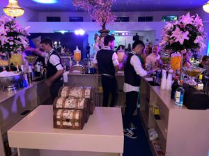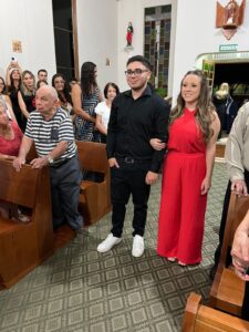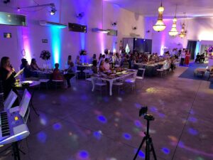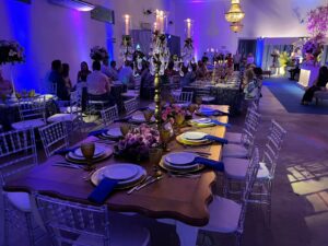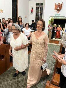 Após a missa os convidados foram recepcionados em um jantar no salão de eventos do SIMTED, com decoração especial e música ao vivo.