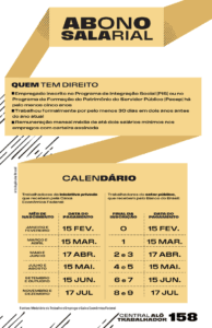 Para servidores públicos, militares e empregados de estatais, inscritos no Pasep, a liberação ocorre pelo Banco do Brasil, nas mesmas datas do PIS. Nos dois casos, no PIS e no Pasep, o dinheiro estará disponível até 28 de dezembro. Após esse prazo, os recursos voltam para o caixa do governo.
