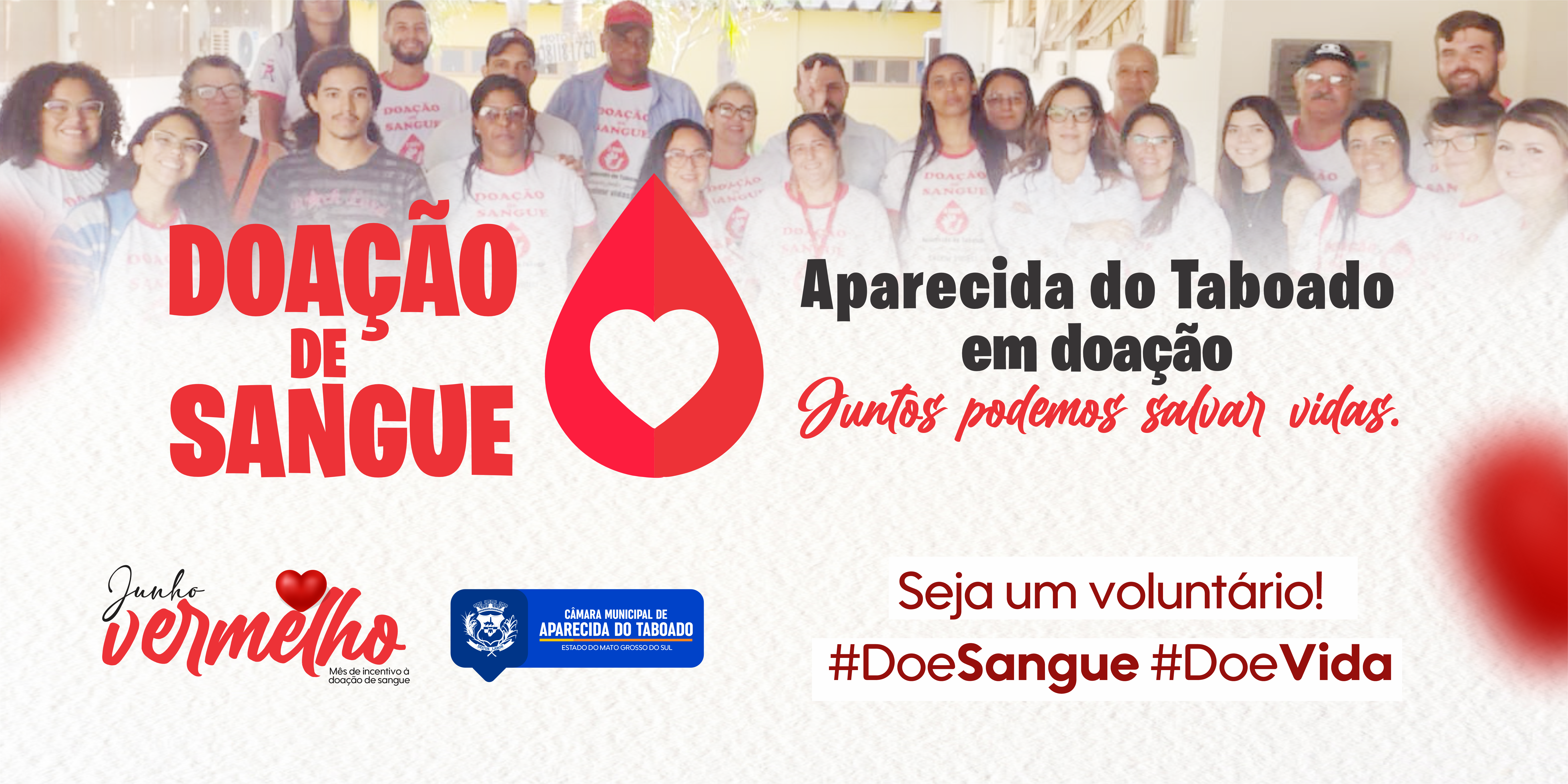 Neste mês de junho, a Câmara Municipal de Aparecida do Taboado-MS reconhecendo a importância da doação de sangue, lançou à campanha Junho Vermelho. A iniciativa tem como objetivo incentivar toda a população aparecidense a participar dessa ação tão nobre, que pode salvar vidas.