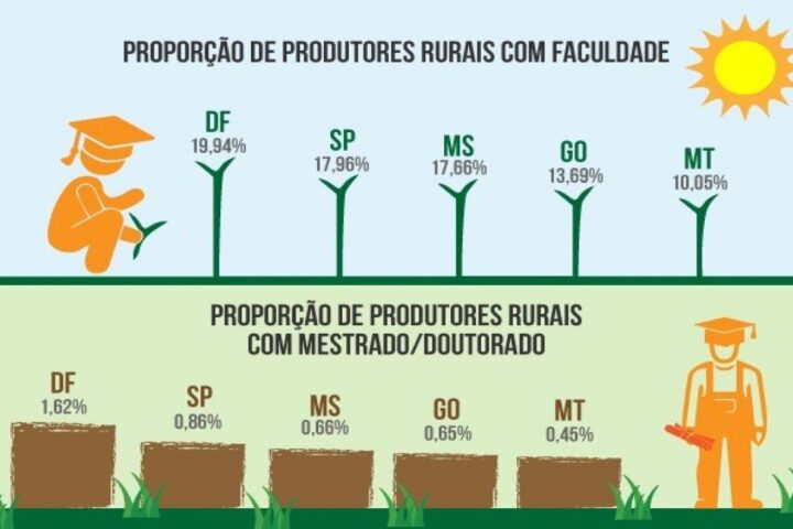 MaisMato Grosso do Sul tem 70.010 proprietários rurais, dos quais 12.484 têm diploma, sétimo lugar no país, e 468 com mestrado e/ou doutorado, ocupando a nona posição nacional.