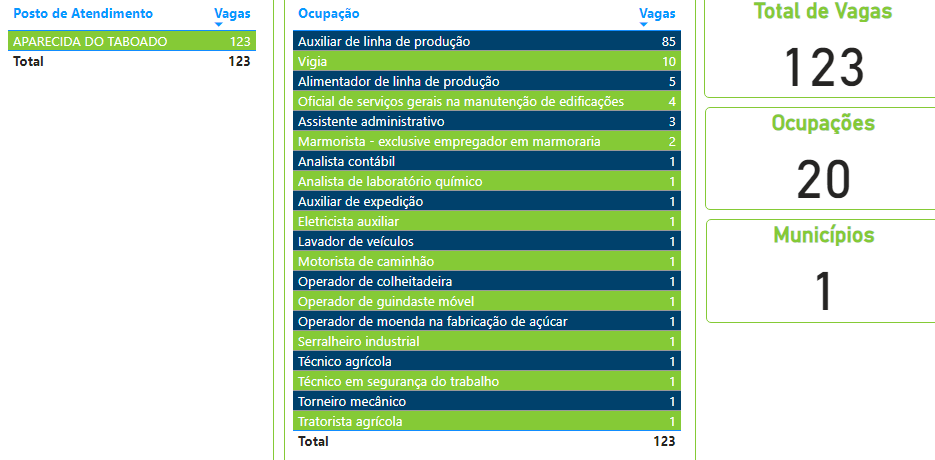 Aparecida do Taboado (MS) – A Casa do Trabalhador do município, atualmente conta com 123 vagas de emprego disponíveis para serem preenchidas, de acordo com o site da FUNTRAB. As vagas são variadas e destinadas para candidatos com ensino médio completo, ensino superior e experiência na área.