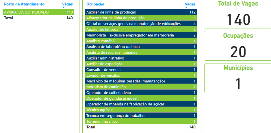 Aparecida do Taboado (MS) – A Casa do Trabalhador do município, atualmente conta com 140 vagas de emprego disponíveis para serem preenchidas, de acordo com o site da FUNTRAB. As vagas são variadas e destinadas para candidatos com ensino médio completo, ensino superior e experiência na área.