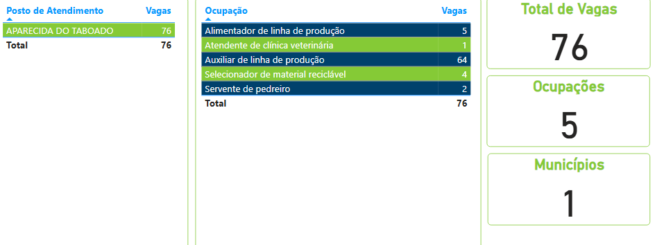 A Casa do Trabalhador de Aparecida do Taboado atualmente conta com 76 vagas de emprego disponíveis para serem preenchidas, de acordo com o site da FUNTRAB. As vagas são variadas e destinadas para candidatos com ensino médio completo, ensino superior e experiência na área.
