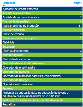De acordo com a Fundação do Trabalho de Mato Grosso do Sul (Funtrab), as vagas foram atualizadas nesta segunda-feira (26). Em todo o estado, há 3.154 oportunidades disponíveis. Para conferir as vagas em outras cidades, acesse o site da Funtrab.