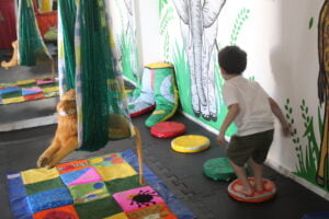 Com mais de 40 cursos na área, Jackeliny investiu em um espaço temático com o tema “fantástico safari” que estimula os sentidos dos pacientes com algumas especialidades, como: