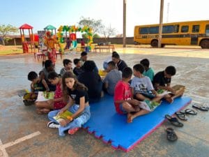 Alunos, pais e educadores da Escola Municipal “João Chama”, participaram do Clube de Leitura Infantojuvenil realizado no domingo (3) no pátio da Escola. A iniciativa é da Secretaria Municipal de Educação.
