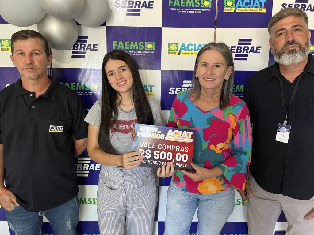 Aparecida do Taboado (MS) – Na tarde desta terça-feira (13), foi realizada, na sede da Associação Comercial e Industrial de Aparecida do Taboado (ACIAT), a entrega dos prêmios do primeiro sorteio da promoção Show de Prêmios 2025, que contempla as campanhas 4 Amores e Final de Ano Premiado. O sorteio que revelou os primeiros ganhadores, assim como as empresas onde foram feitas as compras que geraram os cupons premiados, ocorreu na segunda-feira, 12 de maio.