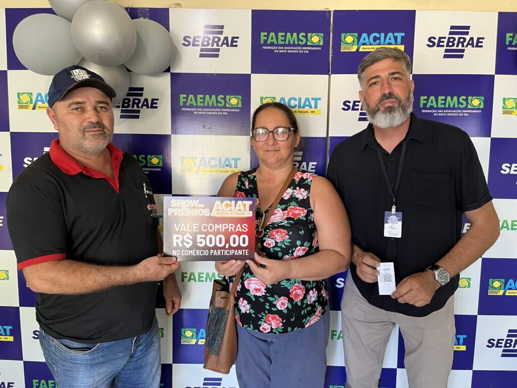 Aparecida do Taboado (MS) – Na tarde desta terça-feira (13), foi realizada, na sede da Associação Comercial e Industrial de Aparecida do Taboado (ACIAT), a entrega dos prêmios do primeiro sorteio da promoção Show de Prêmios 2025, que contempla as campanhas 4 Amores e Final de Ano Premiado. O sorteio que revelou os primeiros ganhadores, assim como as empresas onde foram feitas as compras que geraram os cupons premiados, ocorreu na segunda-feira, 12 de maio.