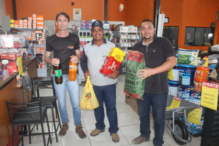 MaisAparecida do Taboado (MS) – Rodrigo Pedrosa de Oliveira, conhecido como Neguim Eletricista, participou da promoção da GALANE Casa & Construção e foi contemplado com um kit churrasco. Ele compareceu à loja