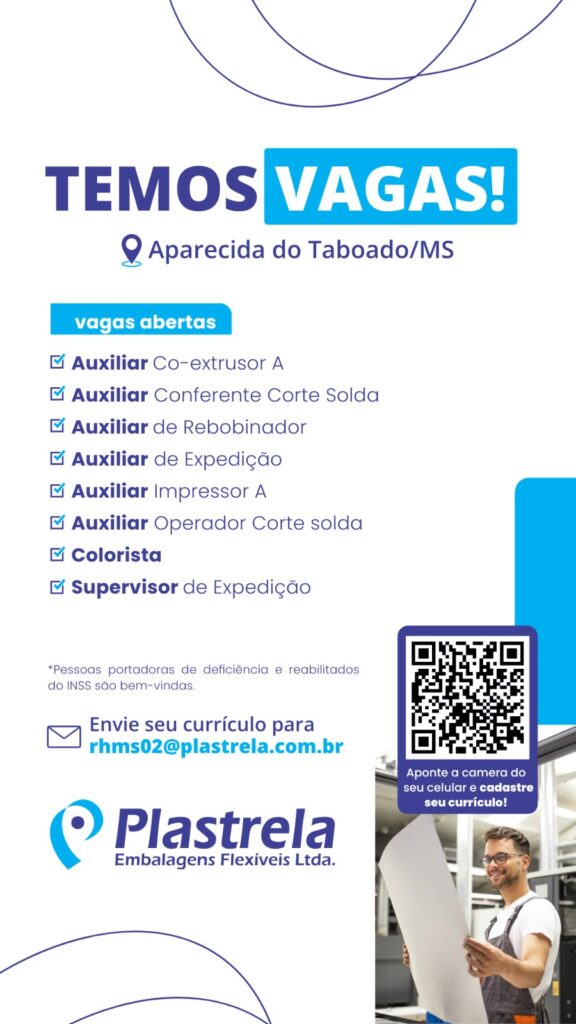 Aparecida do Taboado (MS) – Está em busca de uma oportunidade de emprego? O Costa Leste News reuniu algumas das vagas de emprego disponíveis nas indústrias Plastrela, Bello Alimentos e GeneSeas.