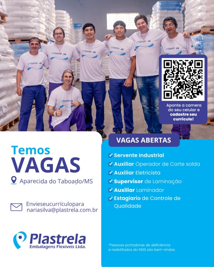 Aparecida do Taboado (MS) – Está em busca de uma oportunidade de emprego? O Costa Leste News reuniu algumas das vagas de emprego disponíveis nas indústrias Plastrela, Bello Alimentos, Eucapinus e GeneSeas.