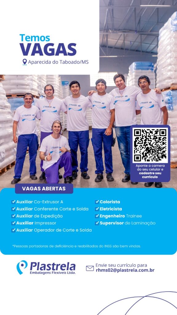 Aparecida do Taboado (MS) – Está em busca de uma oportunidade de emprego? O Costa Leste News reuniu algumas das vagas de emprego disponíveis nas indústrias Plastrela, Bello Alimentos, Eucapinus e GeneSeas.