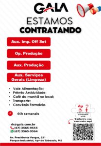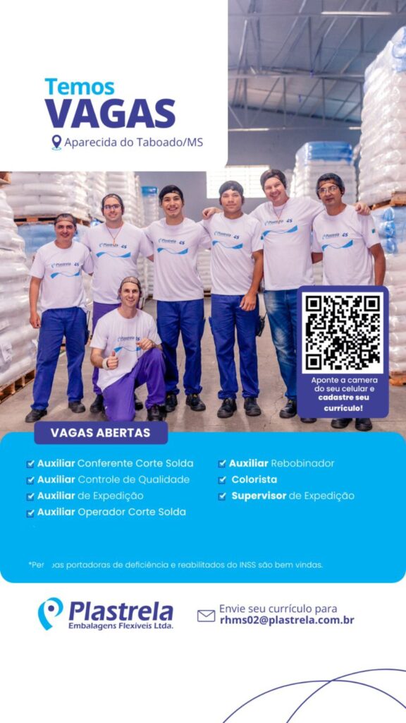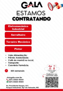 Aparecida do Taboado (MS) – Está em busca de uma oportunidade de emprego? O Costa Leste News reuniu algumas das vagas de emprego disponíveis nas indústrias Plastrela, Gala, Bello Alimentos e GeneSeas.
