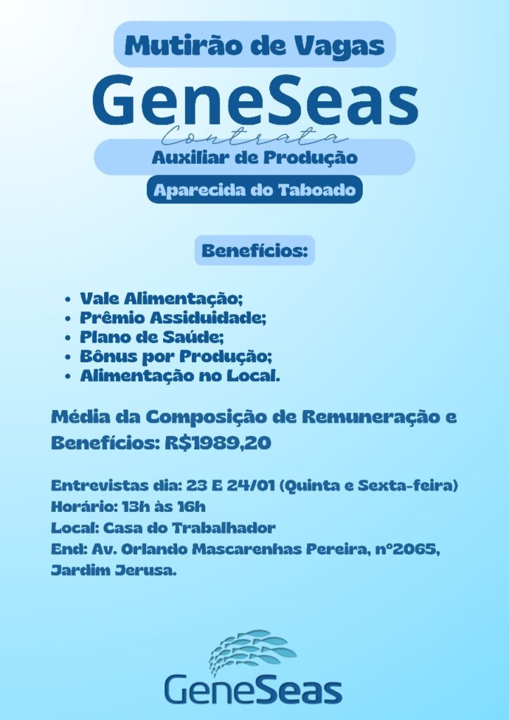 Vagas de emprego GeneSeas (PCD) e Mutirão de Vagas 23 e 24 de Janeiro