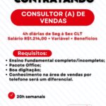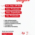 Vagas disponíveis: Auxiliar de Produção, Consultor de Vendas, Op. Produção, Auxiliar Impressão Off Set, Auxiliar de Expedição, Torneiro Mecânico, Cozinheira