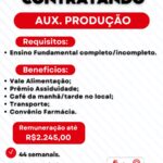 Vagas disponíveis: Jovem Aprendiz, Auxiliar Co-Extrusor A, Aux. Operador Corte e Solda, Auxiliar Operador Inno-look, Aux. Conferente de Corte e Solda, Auxiliar Colorista e Auxiliar Rebobinador.