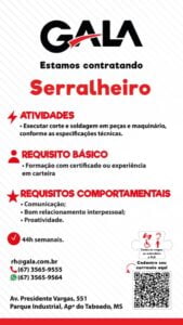 Aparecida do Taboado (MS) – Está em busca de uma oportunidade de emprego? O Costa Leste News reuniu algumas das vagas de emprego disponíveis nas indústrias Plastrela, Gala, Bello Alimentos e Probel.