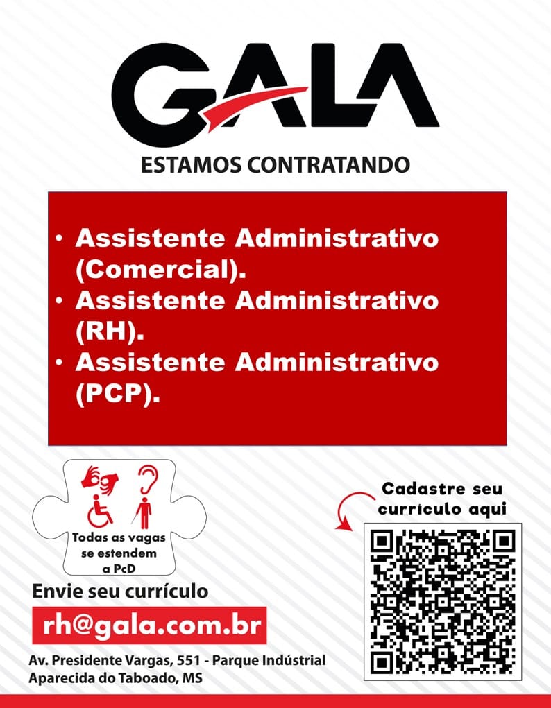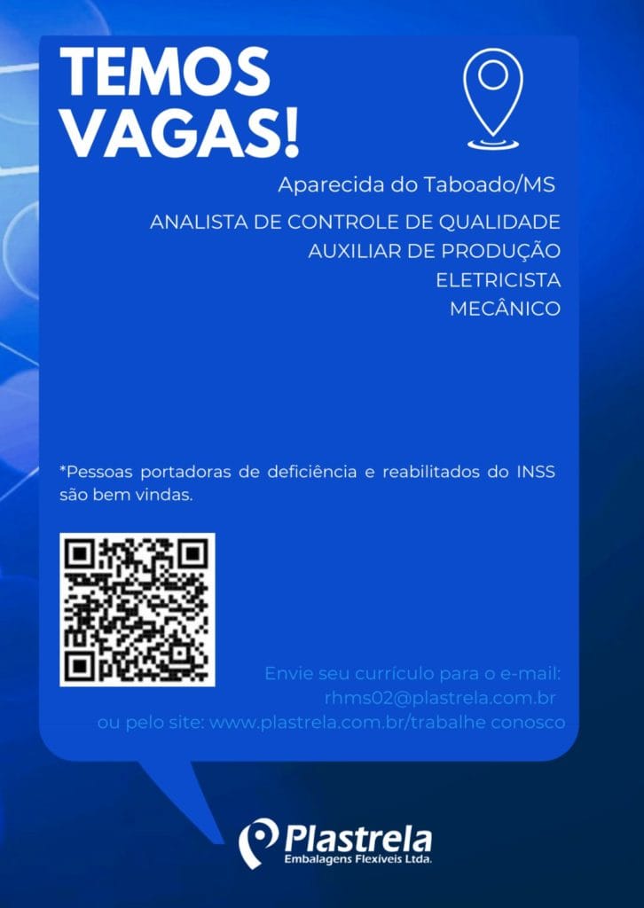 Aparecida do Taboado (MS) – Está em busca de uma oportunidade de emprego? O Costa Leste News reuniu algumas das vagas disponíveis nas indústrias Plastrela, Gala e Bello Alimentos. Os interessados devem procurar as respectivas empresas através dos contatos disponibilizados nos anúncios.